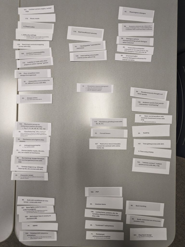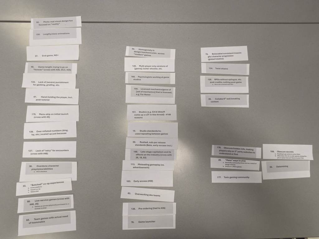 - Reddit Thread Analysis Preliminary Results: “What game mechanic needs to die?”