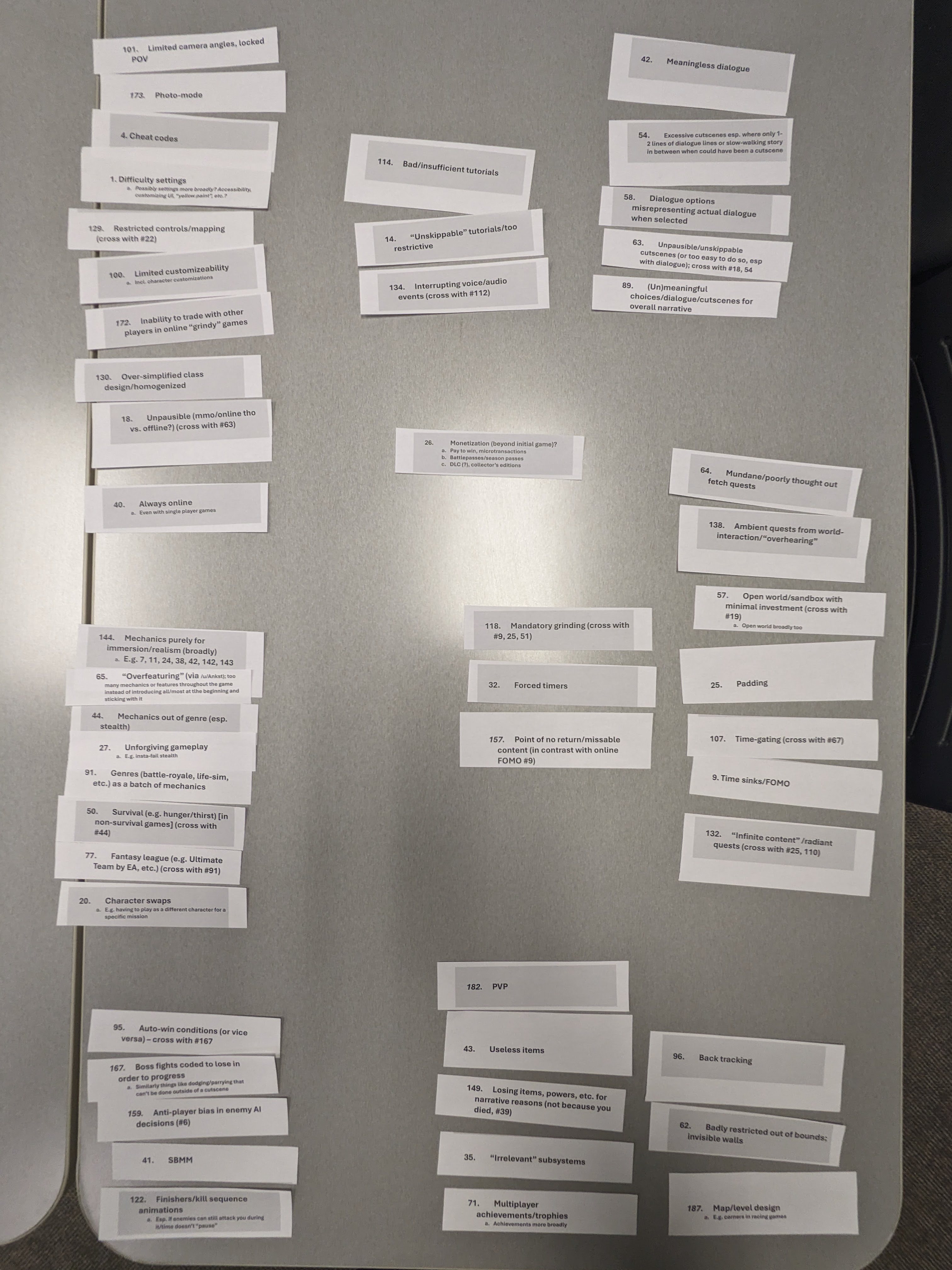 - Reddit Thread Analysis Preliminary Results: “What game mechanic needs to die?”